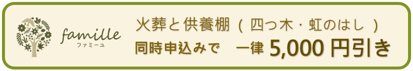 火葬+供養棚を同時でお申し込みいただくと一律5,000円引きいたします。