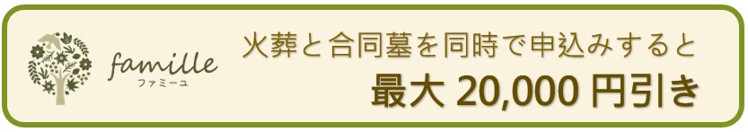 火葬+合同墓を同時でお申し込みいただくと最大20,000円引きいたします。