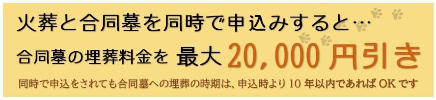 火葬+合同墓を同時でお申し込みいただくと最大20,000円引きいたします。