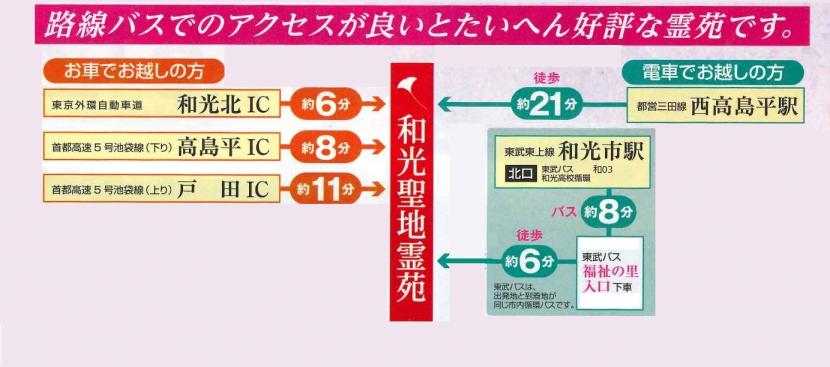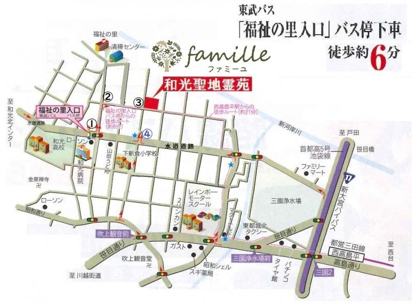 東武東上線・東京メトロ有楽町線・副都心線「和光市駅」より東武バスにて「福祉の里入り口」バス停下車 徒歩約6分