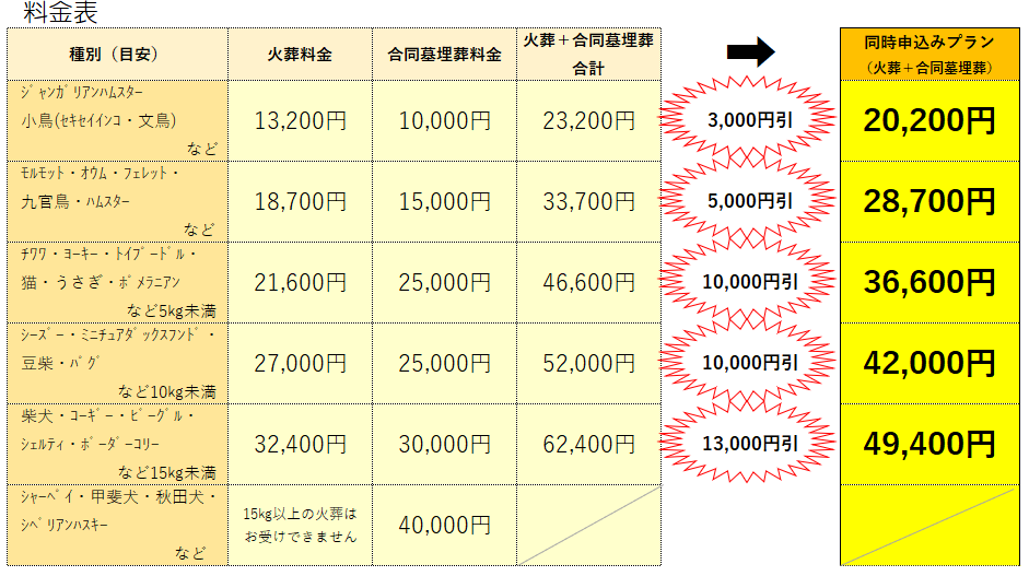 ペット火葬/埋葬料金