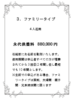 申込者様全ての方が埋葬されてから既定の期間が過ぎましたらご遺骨を当苑の永代供養墓『静偲堂』へ改葬いたします。